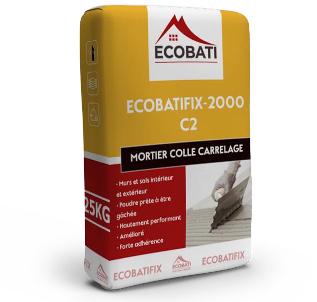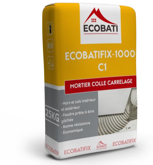 ECOBATIFIX 1000 classe C1est un adhésif en poudre de couleur blanche à base de ciment, silice et adjuvants spéciaux.