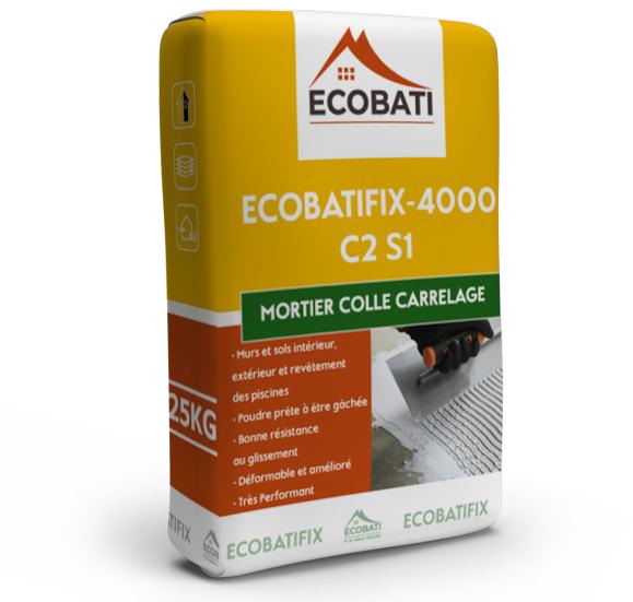 ECOBATIFIX 4000 classe C2S1 est un adhésif en poudre de couleur blanche à base de ciment, silice, réactifs hydrofuges et adjuvants spéciaux
